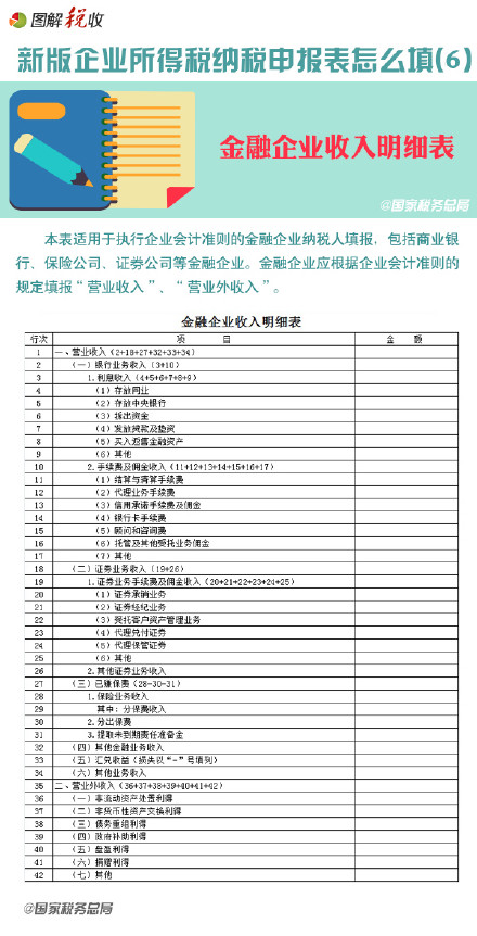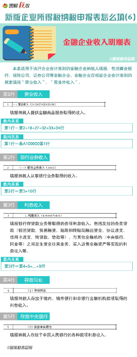 2015年(2014年度)企業所得稅納稅申報表填寫方法(6):金融企業收入明細表