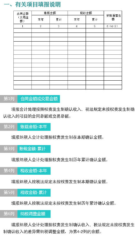 本表適用于會計處理按權責發生制確認收入、稅法規定未按權責發生制確認收入需納稅調整項目的納稅人填報。根據規定填報會計處理按照權責發生制確認收入、稅法規定未按權責發生制確認收入的會計處理等。